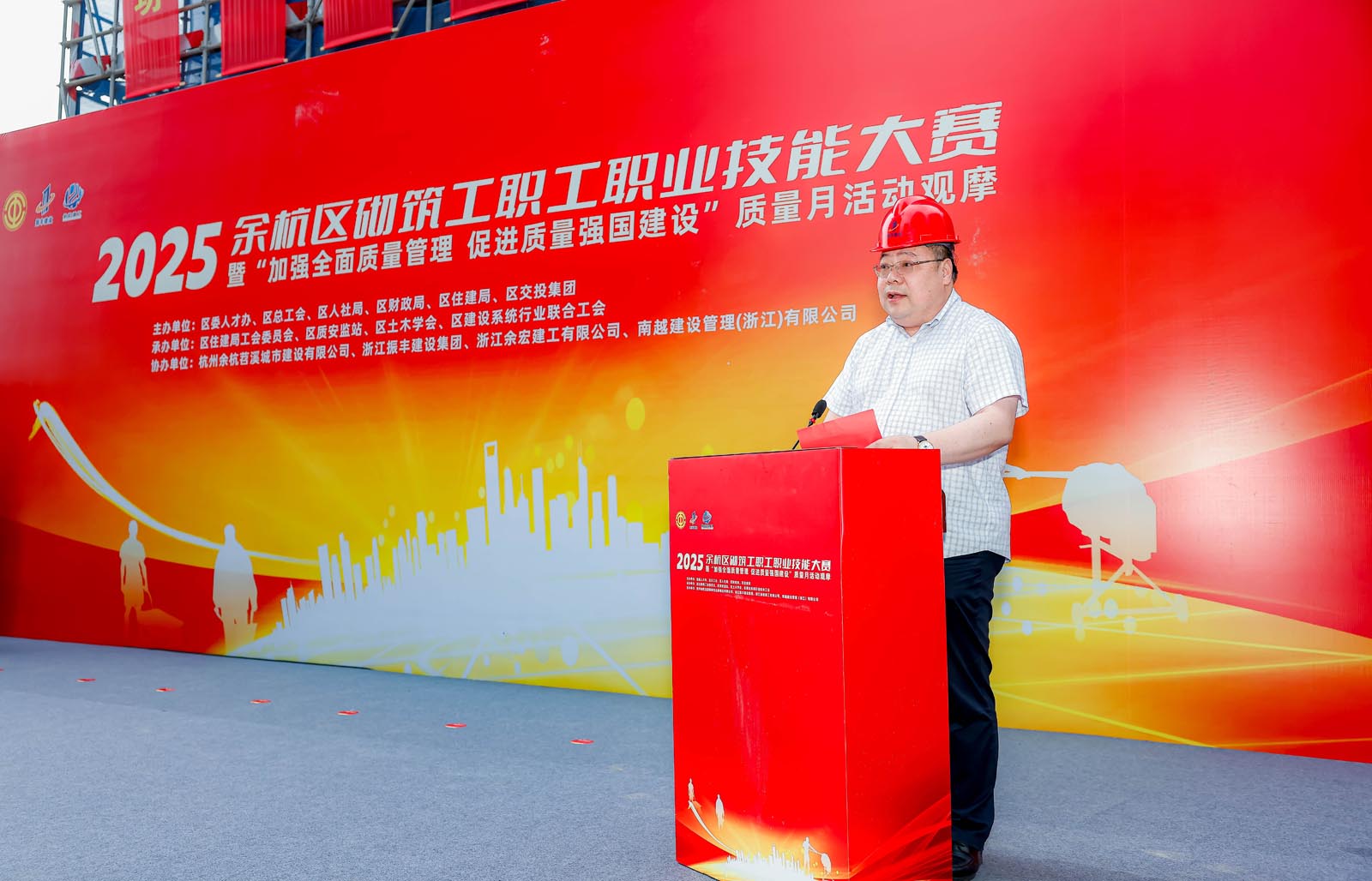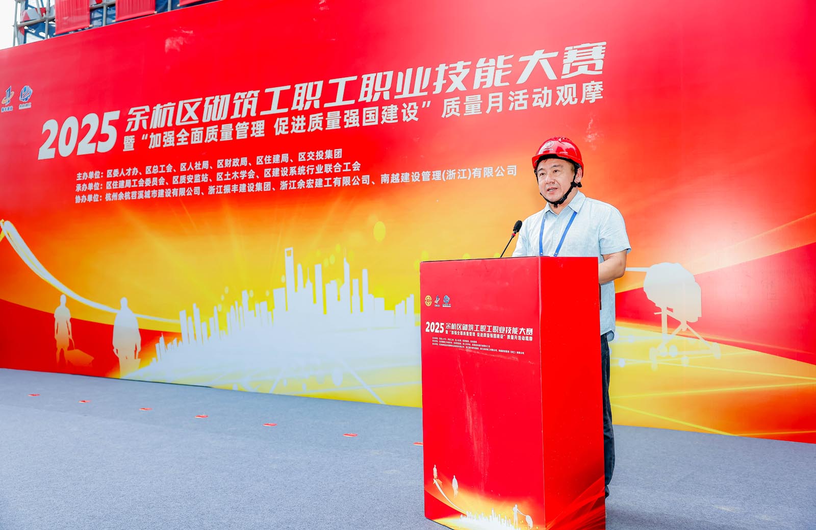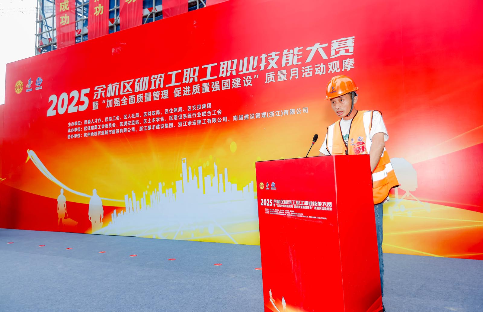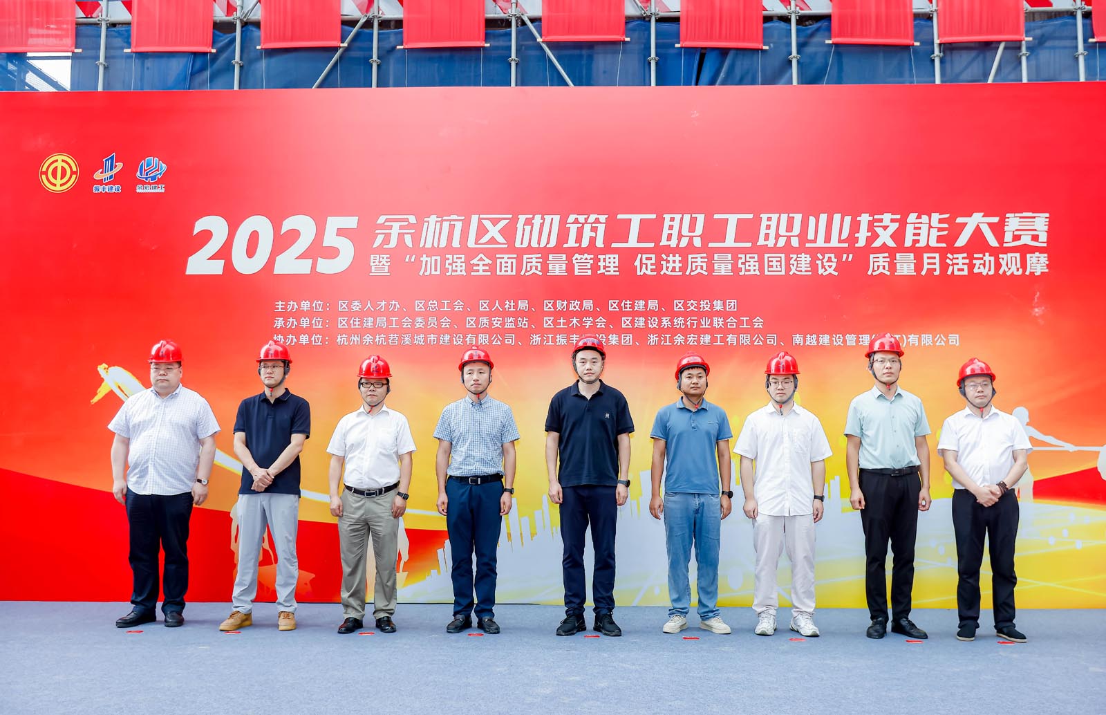 大赛由区委人才工作领导小组办公室、区总工会、区人力资源和社会保障局、区财政局、区住房和城乡建设局联合主办,区住房和城乡建设局工会、区建筑工程质量安全监督站、区建设系统联合工会、区土木学会共同承办,杭州余杭溪居保障性住房建设有限公司、浙江振丰建设有限公司、浙江余宏建工有限公司及南越建设管理(浙江)有限公司协办。各单位高度重视、紧密协作,确保大赛高标准、高质量、高水平推进。